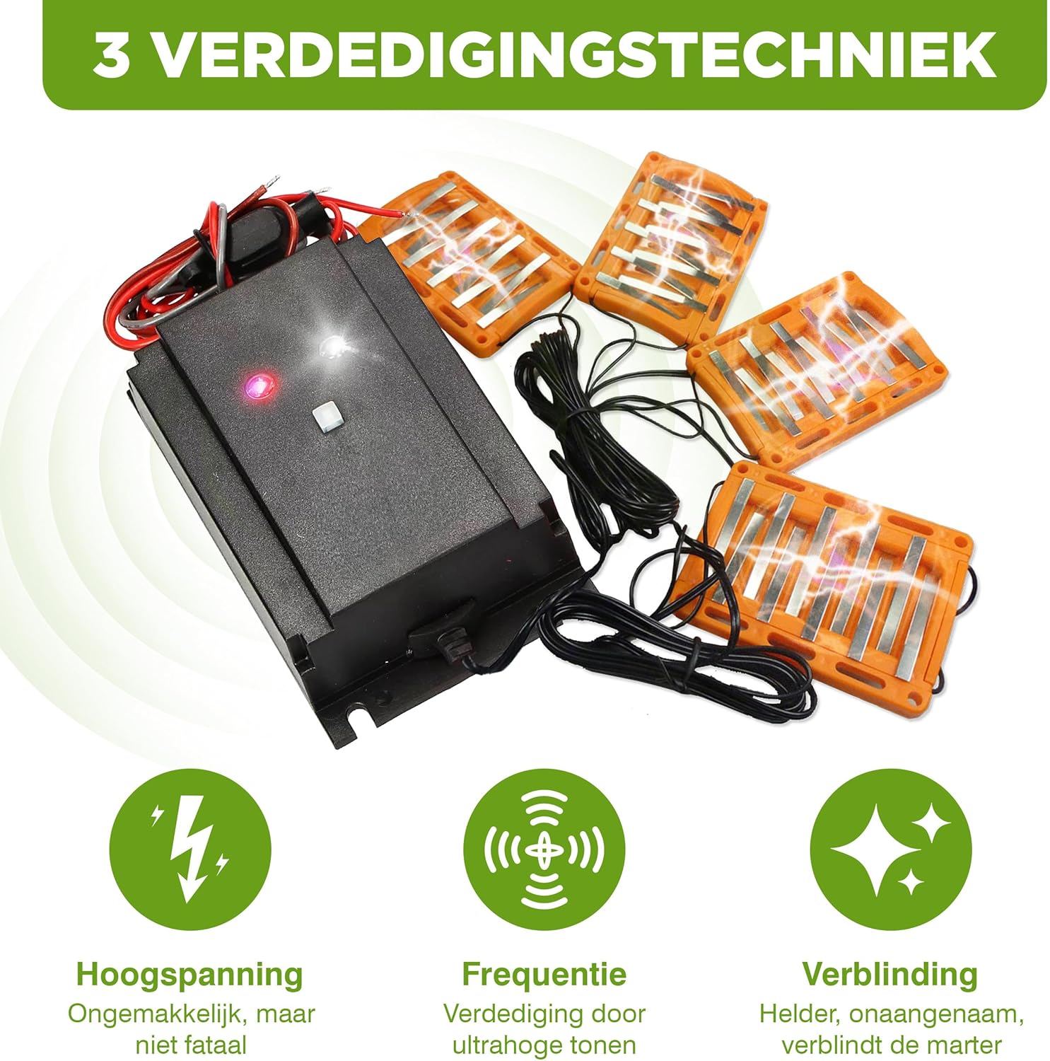 ✔ Dvojitý odpudzovací systém – Kombinácia ultrazvukových signálov (12 – 24 kHz) a vysokonapäťových doštičiek zabezpečuje maximálnu účinnosť ochrany. Týmto spôsobom sa výrazne znižuje pravdepodobnosť, že sa kuny a hlodavce rozhodnú usadiť vo vašom vozidle.